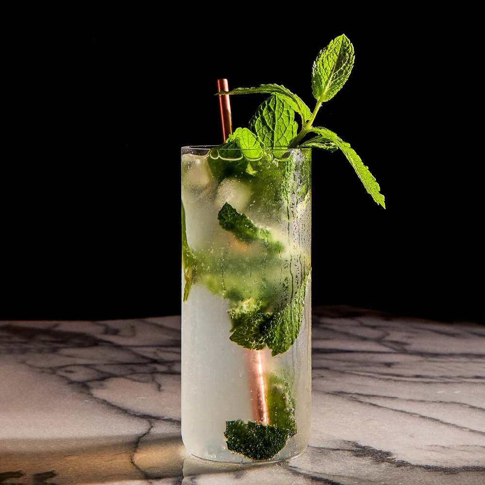 Într-un pahar înalt de cocktail, amestecați două crenguțe de mentă cu zahărul și sucul de lime. Umpleți paharul cu gheață, apoi adăugați romul, urmat de sifon. Puneți crenguța de mentă rămasă între palme pentru a-i elibera aroma, apoi turnați-o în pahar.